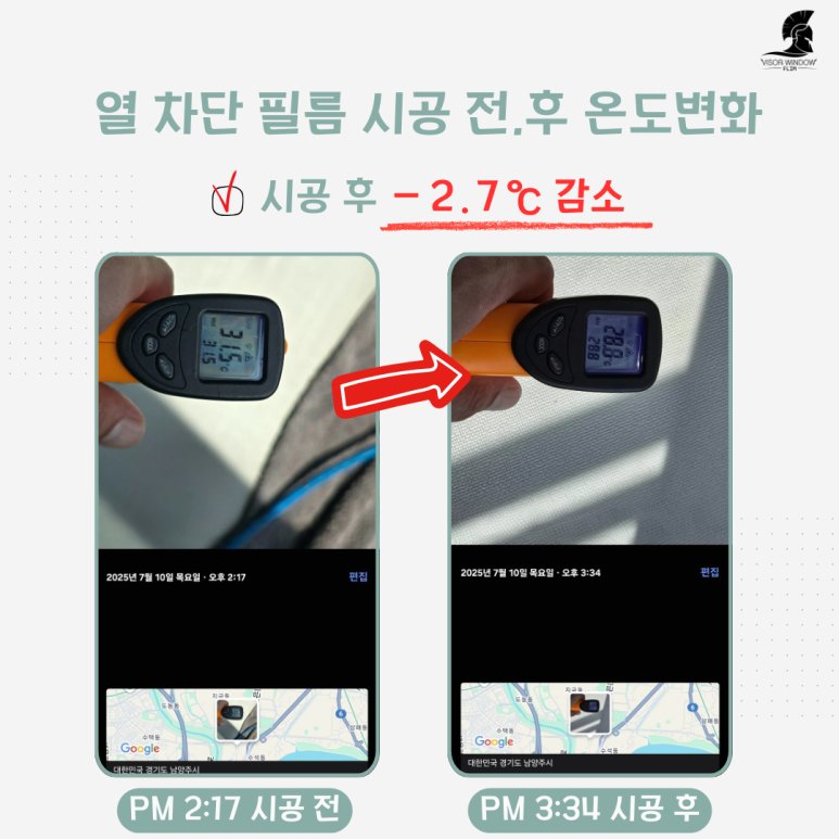 열 차단 필름 시공 전,후 온도 변화